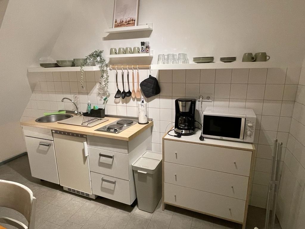 Das Einzimmer Apartment ( 14 ) verfügt über eine Größe von ca. 36 m2. Das Apartment ist ausgestattet mit einem Doppelbett ( 180 x 200cm ), Küchenzeile mit Herdplatte/ Mikrowelle/ Wasserkocher/ Kühlschrank und Kaffeemaschine, Bad / WC, Badewanne, Flachbildfernseher ( 32 Zoll ) und kostenloses WLAN.