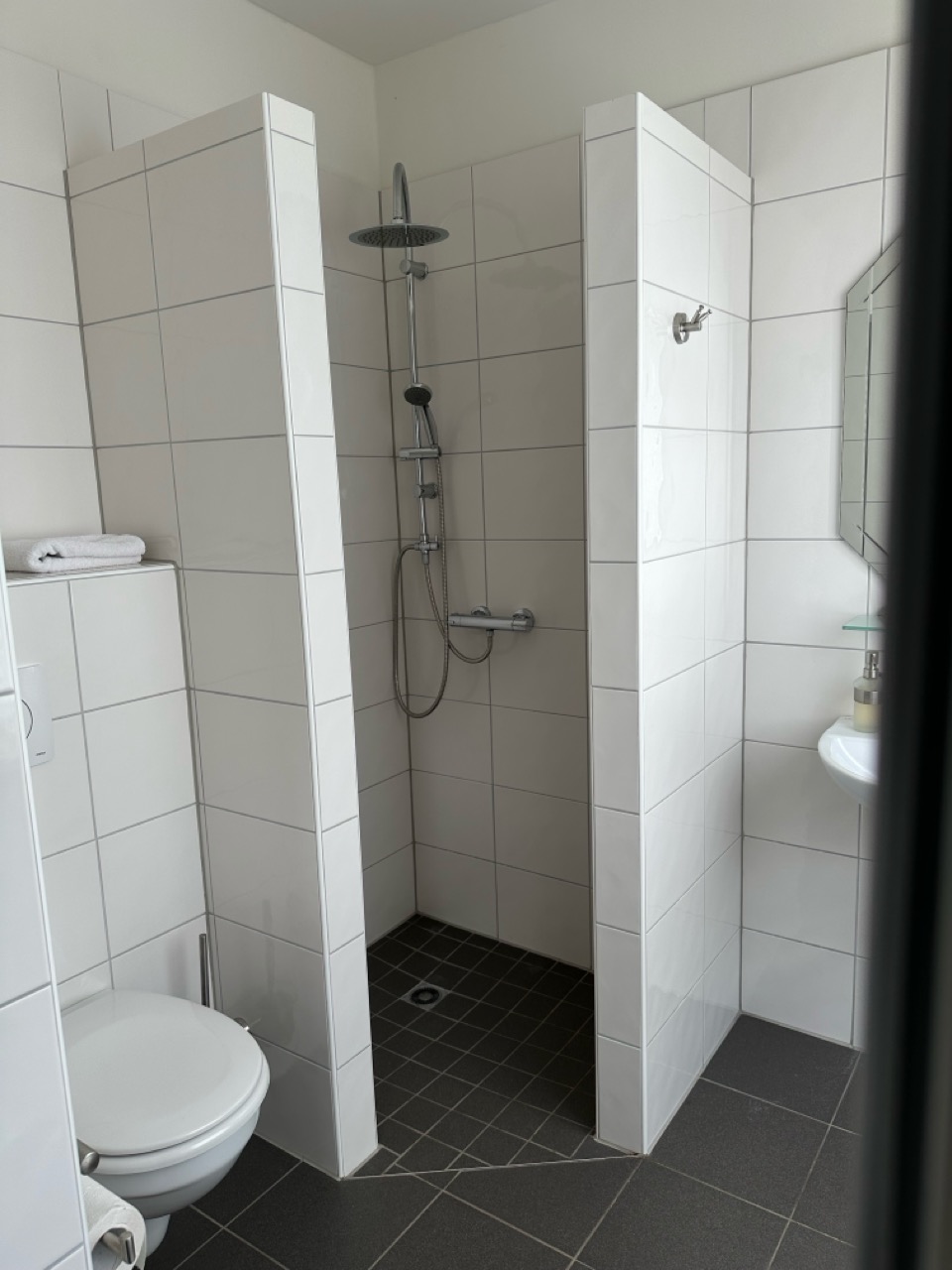 Unsere Einzelzimmer (11m2) mit Dusche und WC sind einfach und funktional eingerichtet. Sie sind eingerichtet mit einem Bett 90x200 , Nachttisch und einen Tisch mit Sitzmöglichkeit. Die Zimmer verfügen über ein Fernseher und einen Wasserkocher.